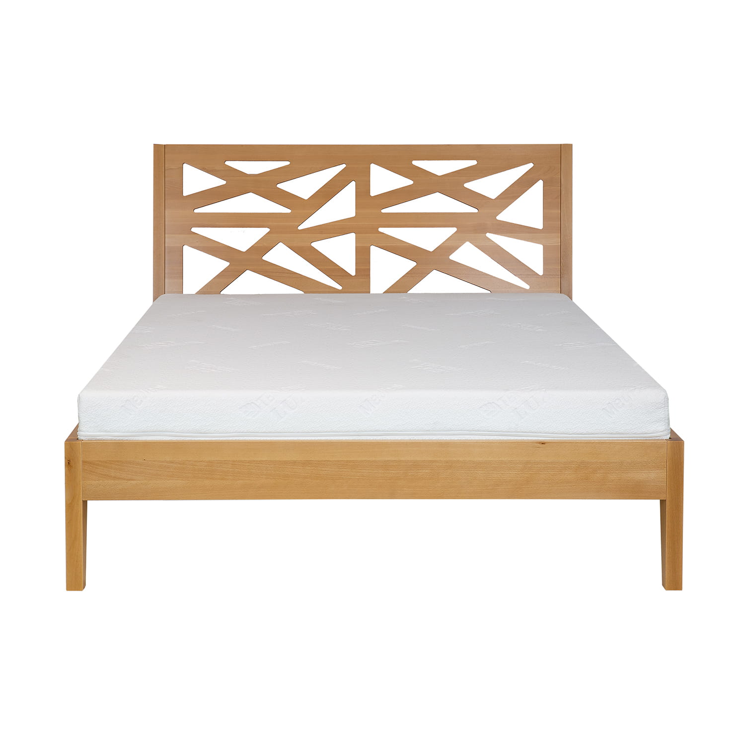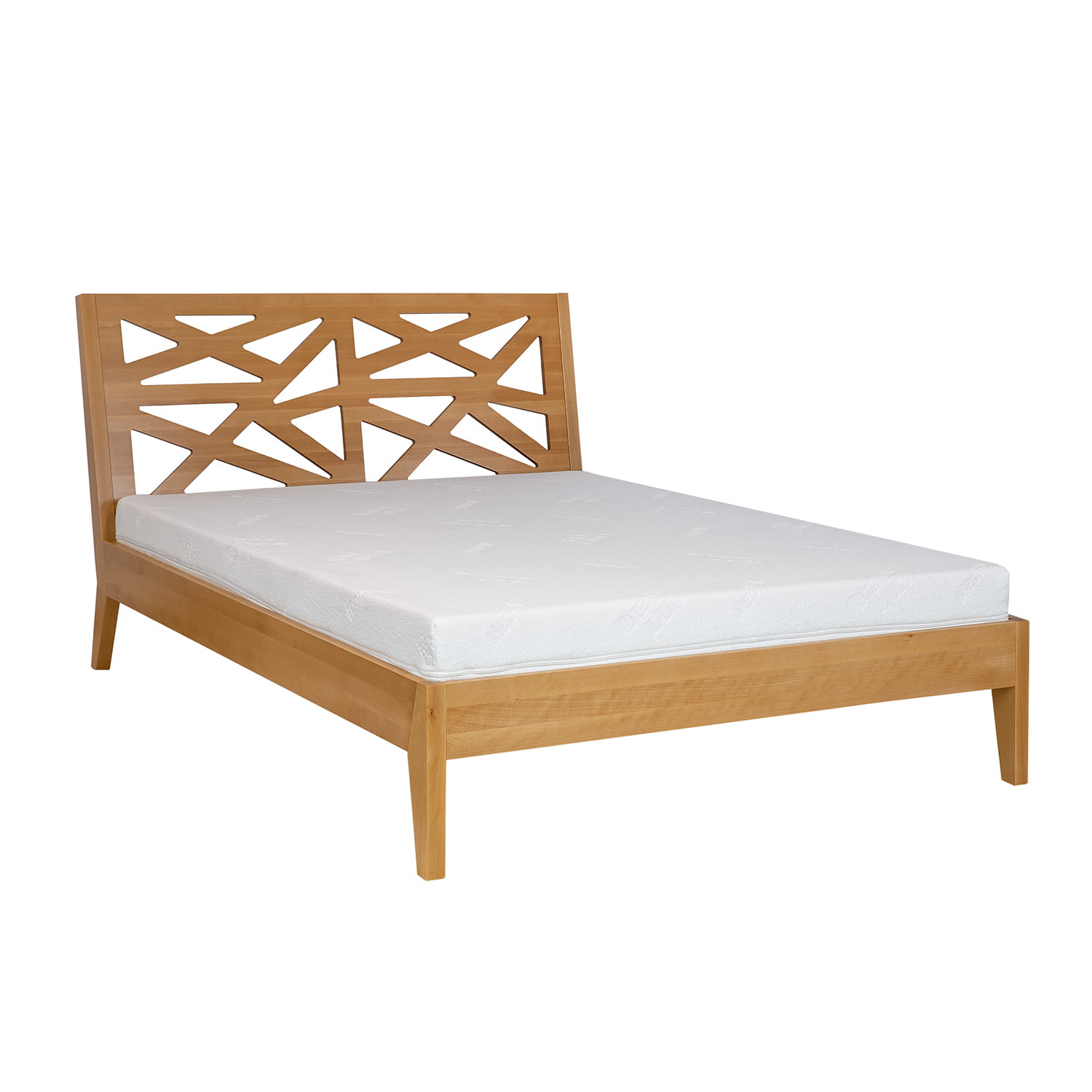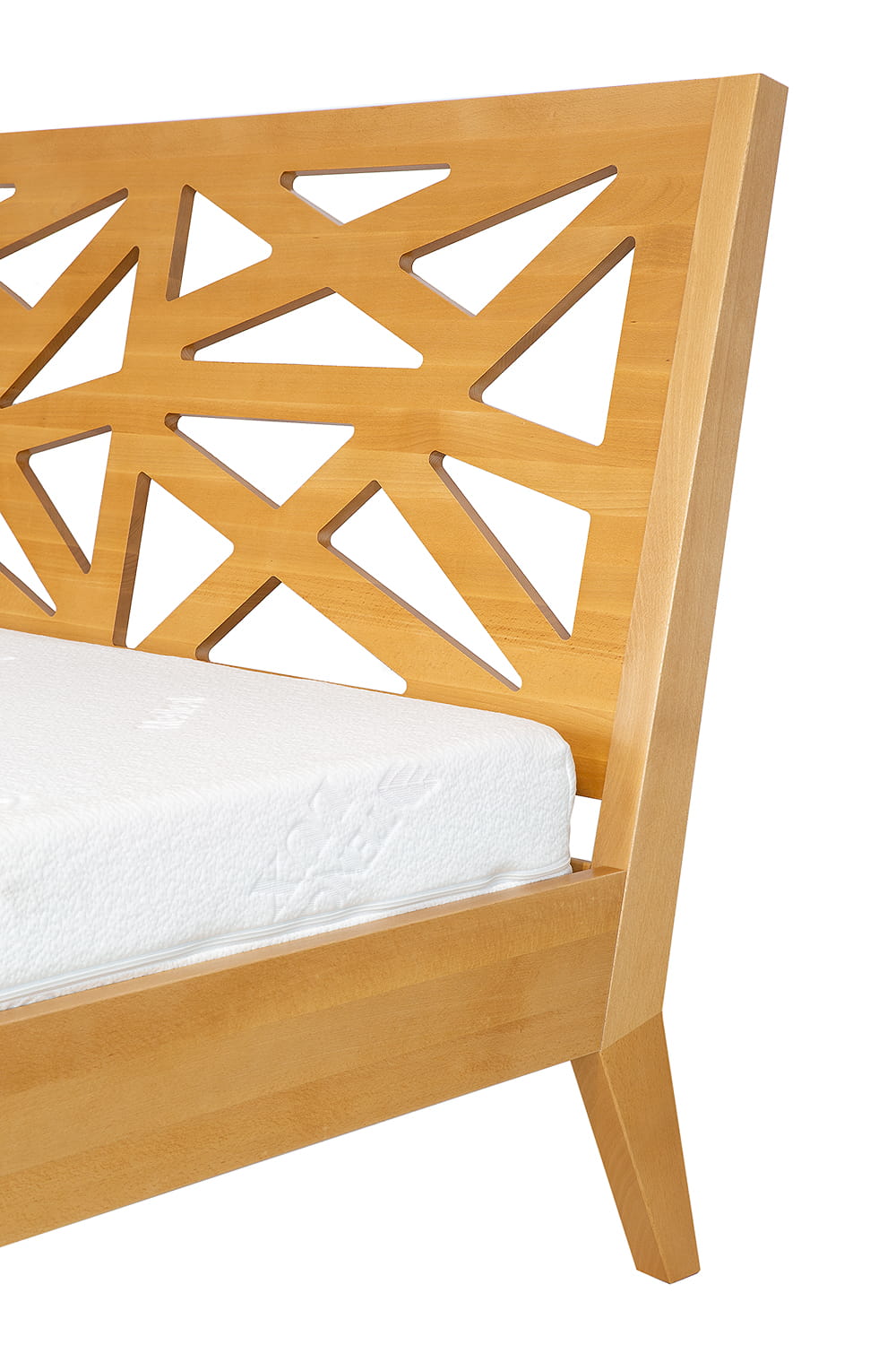Bardzo nowoczesne i oryginalne łóżko LK164, wykonane z litego drewna bukowego. Ażurowy, wygięty zagłówek, wystający ponad ramę łóżka, oprócz funkcji praktycznej pełni przede wszystkim funkcję dekoracyjną. Niepowtarzalny wzór wyróżni się pośród tradycyjnych zagłówków i podkreśli indywidualny charakter pomieszczenia. Wygięte nóżki przy zagłówku oraz małe, ozdobne przednie nóżki mebla, nadają lekkości całej konstrukcji i podkreślają jego wyjątkowość.