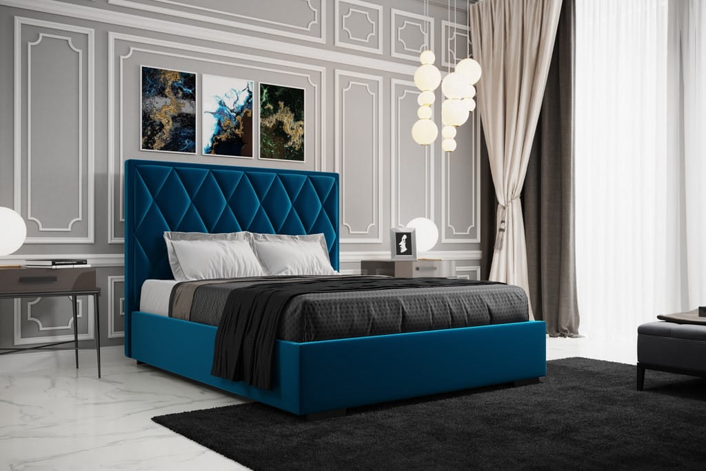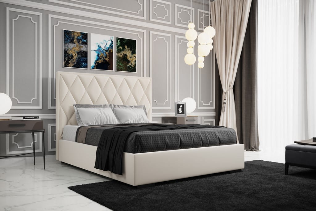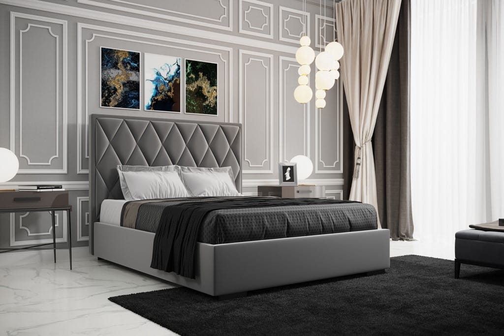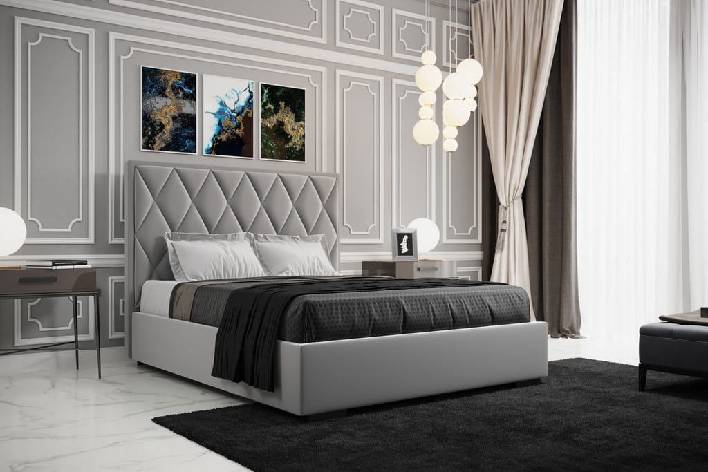 Łóżko LEO cechuje się wytrzymałością oraz oryginalnością wzornictwa. Wezgłowie panelowe we wzorze karo. Estetycznie wykonany zagłówek to gwarancja komfortu dla użytkowników sypialni. Łóżko jest zarówno funkcjonalne jak i oryginalne. Dodatkowym atutem są eleganckie nóżki.