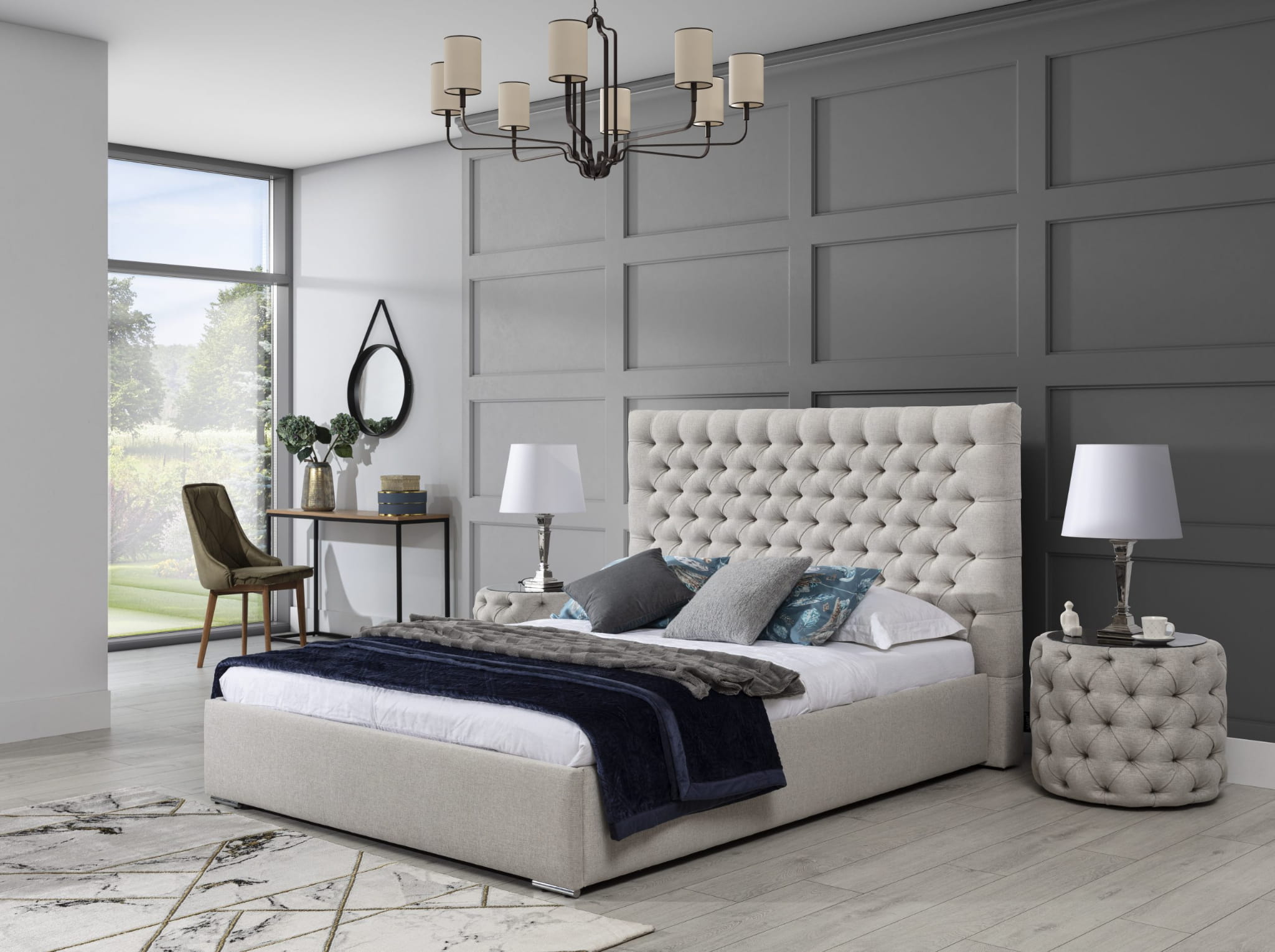Posiada przepiękne wezgłowie, które dodatkowo można wzbogacić kryształkami. Ponadczasowa estetyka daje niezliczone możliwości łączenia i kombinacji tego łóżka z klasycznymi dodatkami.