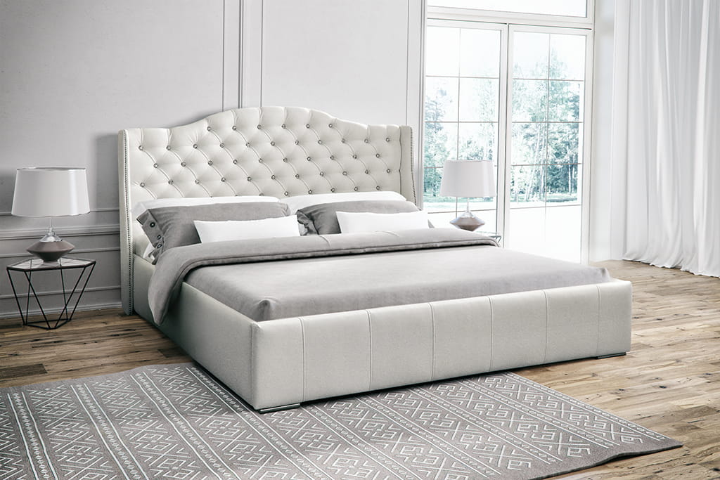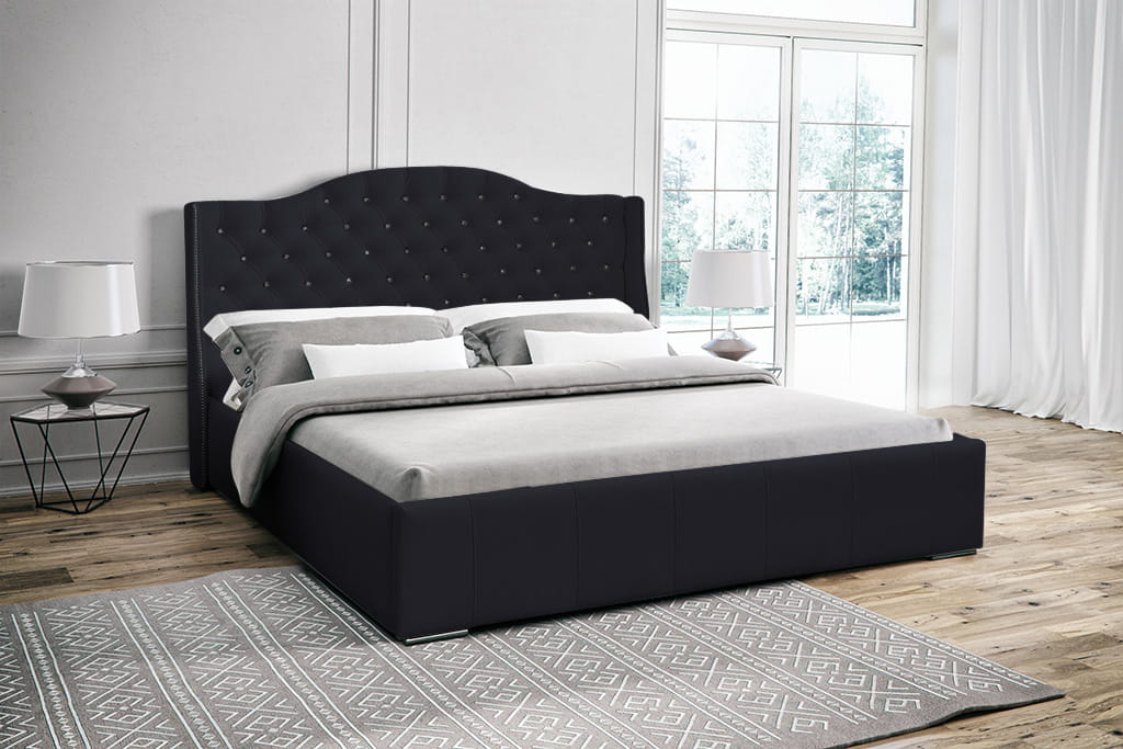 Łóżko tapicerowane EMILY w nowoczesnym stylu. Głęboko pikowane wezgłowie ozdobione kryształkami, które nadają mu niepowtarzalny urok i charakter. Zagłówek nie tylko pięknie wygląda, ale również zapewnia wygodne podparcie dla kręgosłupa w pozycji siedzącej. Łóżko nada elegancki wystrój każdemu pomieszczeniu. Pasuje zarówno do wnętrz klasycznych jak i w stylu Glamour.