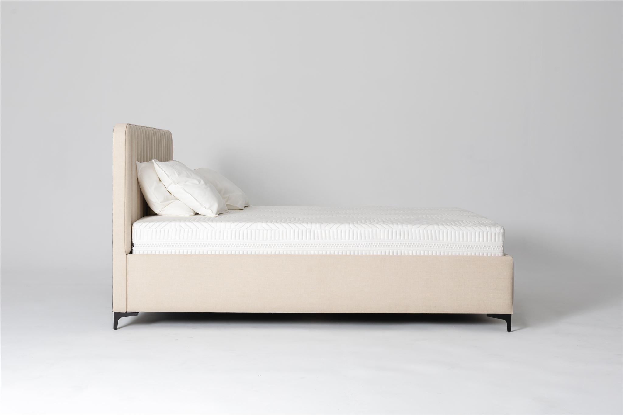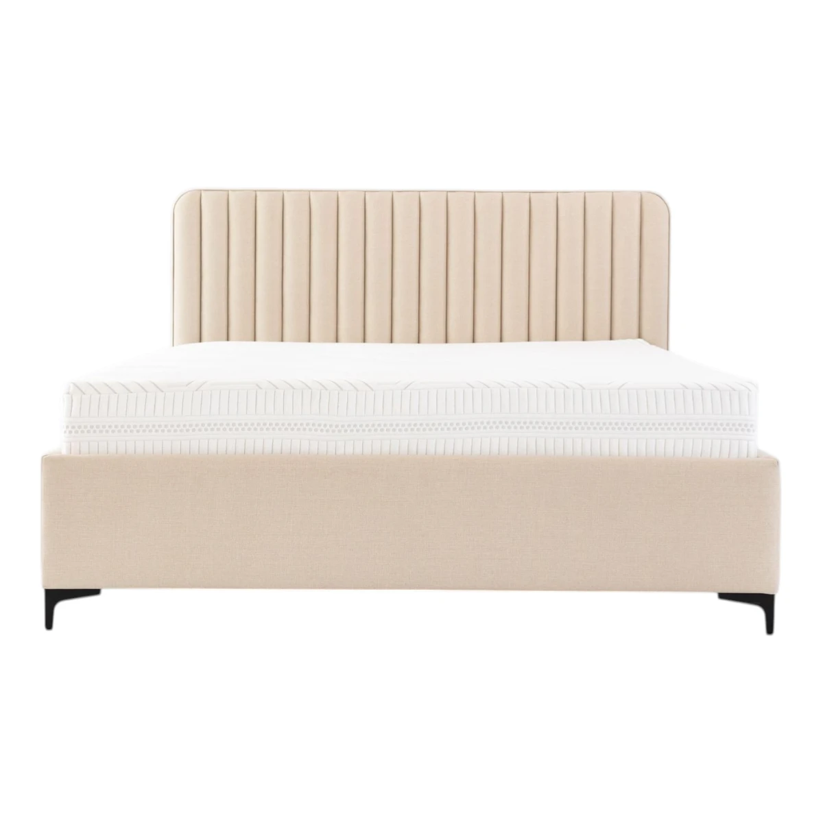 Do łóżka istnieje możliwość dokupienia pojemnika na pościel ze stelażem w ramie metalowej.