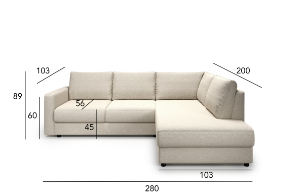 Ważne: Wymiary mebli tapicerowanych podawane są z tolerancją +/- 30mm.
