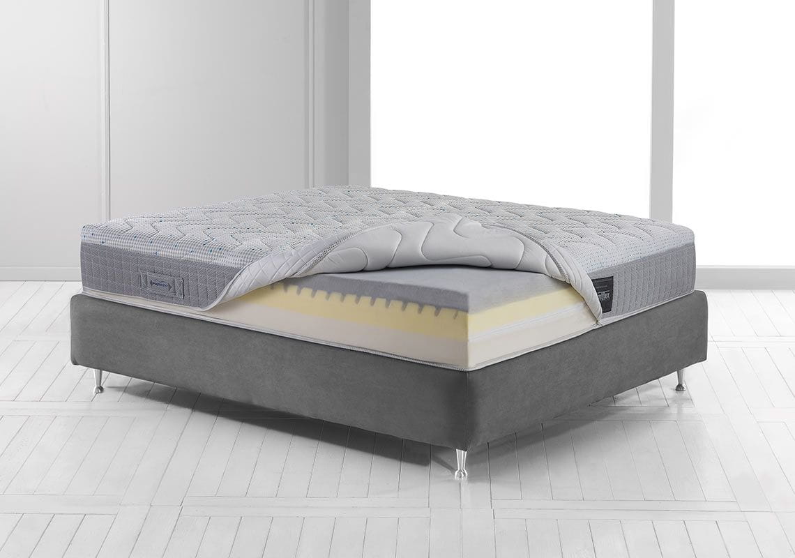 Wysoki materac, średnio miękki, zapewnia aktywną regenerację podczas snu. Wierzchnia warstwa termoelastycznej pianki w powłoce zwiększa komfort. Jest to chroniony na całym świecie patent Magniflex.