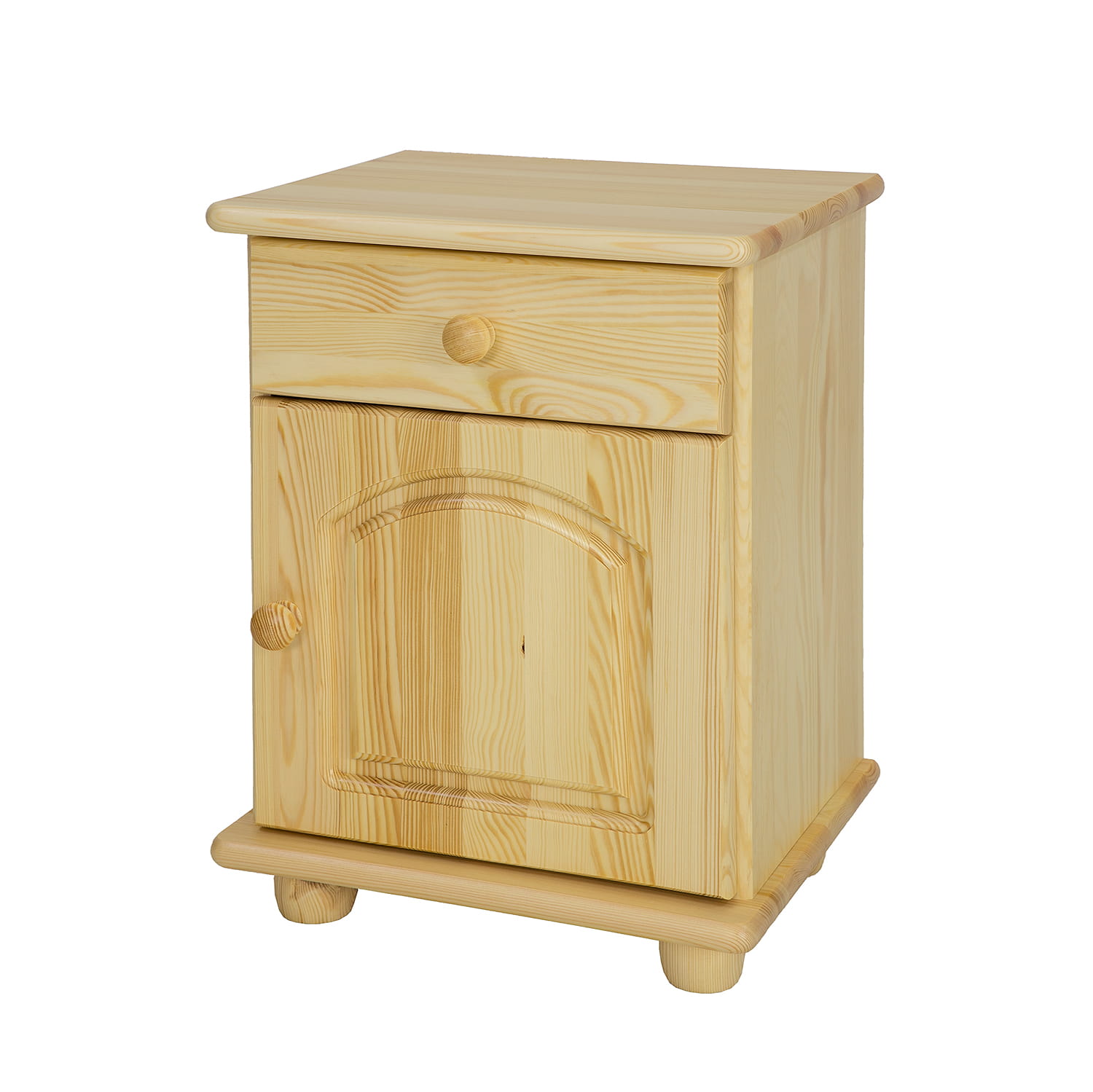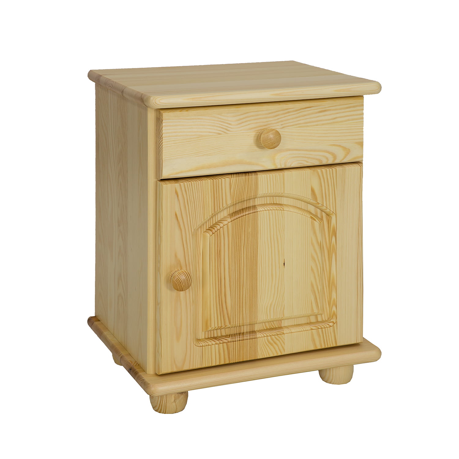 Szafka nocna SN104 stworzona została z myślą o wielbicielach klasycznej estetyki. Wykonana z litego drewna sosnowego, dzięki czemu zyskała ponadczasowy wygląd i elegancję. Jej główną zaletą jest funkcjonalność. Praktyczną przestrzeń do wykorzystania tworzy szuflada i zamykana półka.